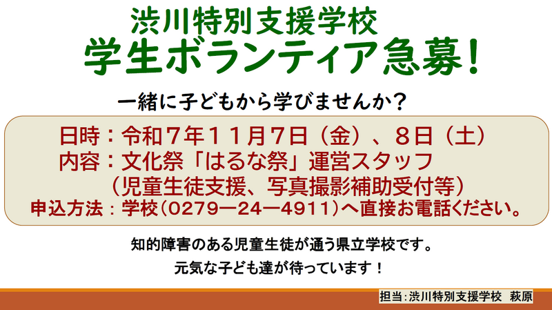 2025.07.25 令和7年度はるなだより(第2号)を掲載しました。2025.07.22 「ぐんまインクルーシブフェス2025」、「R7はるな祭ボランティア募集」について掲載しました。